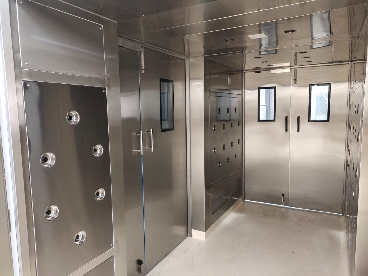 M.O.C. : M.S. CRCA with Powder Coted/SS 304. Doors : AI Duty Powder coated with glass. Prefilters : HDPE,Washable Post Filters : HEPA Filtration Eff. 99.99% down to 0.3 micron particle size. Dynamically balanced blower motor assly specially mounted at bottom on antivibration mountings with rexine bellow for low noise & vibration Power Supply : 440 V, AC, 3 Phase, 50 Hz. Available for 2 person/3 person/4 person.