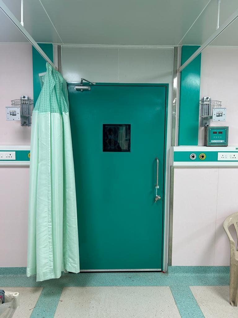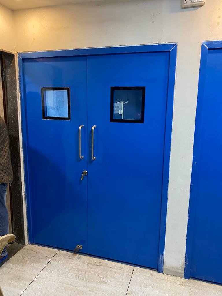 • The hermetically sealing sliding door has been specifically designed for use in areas where hygiene and the control of air leakage is critical. • The door has a unique patented track system which enables it to seal perfectly when closed helping to reduce air handling costs, cross contamination and wound infections. • All adaption certified to required standards. • Smoke and fire protection core. • Available as a manual door. • Flush glazing in line with customer requirements. • Handles on both sides (stainless V2A). • Stainless Steel / PPGI 0.8 mm thick Hinge Double Door with lead and Puff Insulated 42 mm Thick,300 mm X 300 mm view lead glass & Door Closer, D Type Handle, Lock, etc. • Having durability case of control versatility for clean environment.