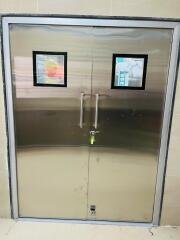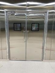 • The hermetically sealing sliding door has been specifically designed for use in areas where hygiene and the control of air leakage is critical. • The door has a unique patented track system which enables it to seal perfectly when closed helping to reduce air handling costs, cross contamination and wound infections. • All adaption certified to required standards. • Smoke and fire protection core. • Available as a manual door. • Flush glazing in line with customer requirements. • Handles on both sides (stainless V2A). • Stainless Steel / PPGI 0.8 mm thick Hinge Double Door with Puff Insulated 42 mm Thick & Door Closer, D Type Handle, Lock, etc. • Having durability case of control versatility for clean environment.